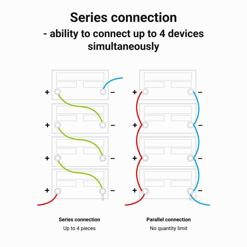 Pozostałe parametry:Żywotność do 3000 cykli (przy DoD 100%), do 5500 cykli (przy DoD 60%) Terminal Śruba M5 Łączenie szeregowe maksymalnie 4 sztuki
