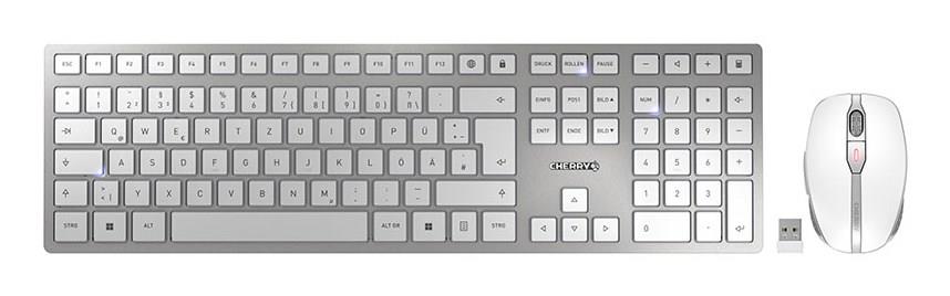CHERRY DW 9100 SLIM klawiatura Dołączona myszka Uniwersalne RF Wireless + Bluetooth QWERTZ Niemiecki Srebrny