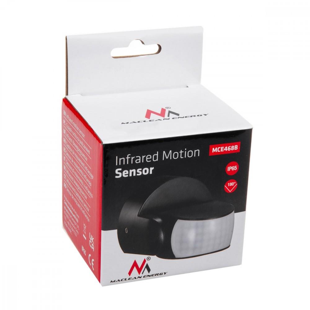 Czujnik ruchu PIR Maclean, na podczerwień, IP65, czarny, zasięg 12m, max. obciążenie 600/1200W, MCE468 B