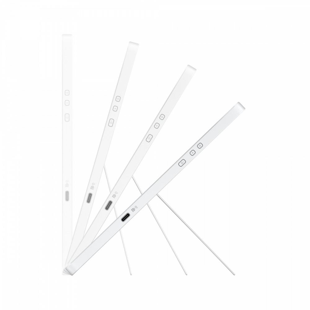 Ćwicz wszechstronność w dowolnej przestrzeni, korzystając z ultrasmukłego i lekkiego przenośnego monitora, który możesz łatwo schować do torby, dzięki wytrzymałej, magnetycznej osłonie, która może być również pomocna jako podkładka pod mysz. Wbudowana podpórka układa się w orientacji poziomej lub pionowej, aby dopasować się do Twojej pracy.