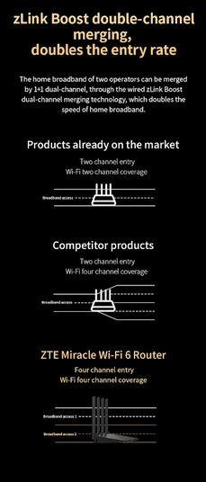 Dzięki przewodowej technologii dual-channel zLink Boost, domowe łącza szerokopasmowe dwóch różnych operatorów mogą być zcalone w jeden wspólny kanał, co pozwala na zwiększenie jego przepustowości na wejściu.