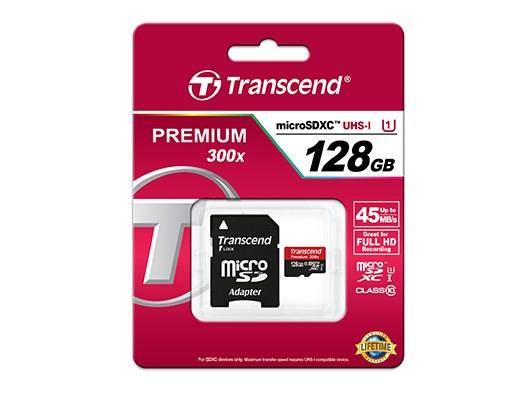 SD microSD Card 128GB Transcend SDXC UHS1 w/adapter