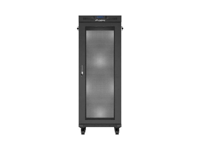 Szafa instalacyjna rack stojąca 19 cali 32U 600x600 drzwi perforowane LCD czarna (Flat pack)