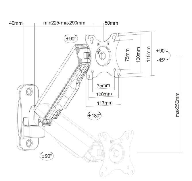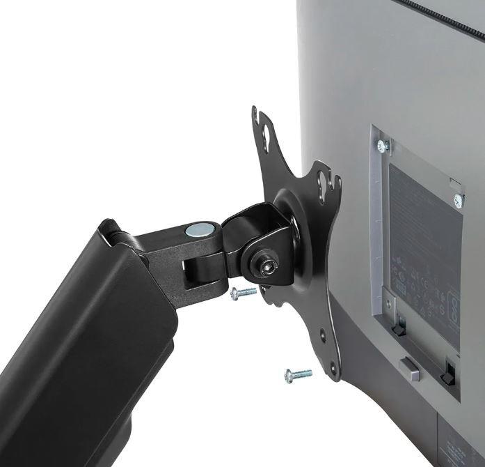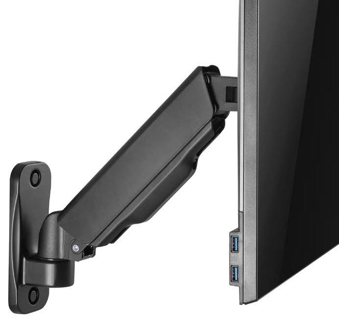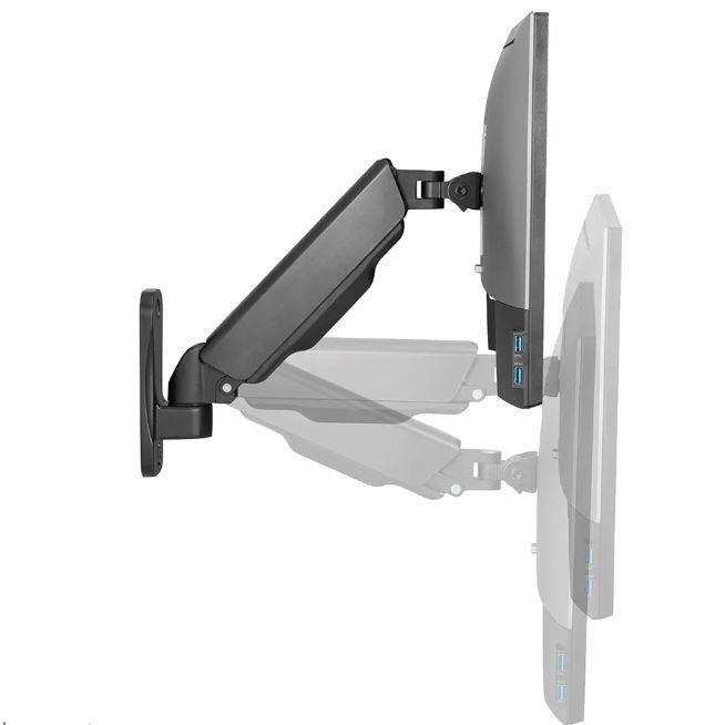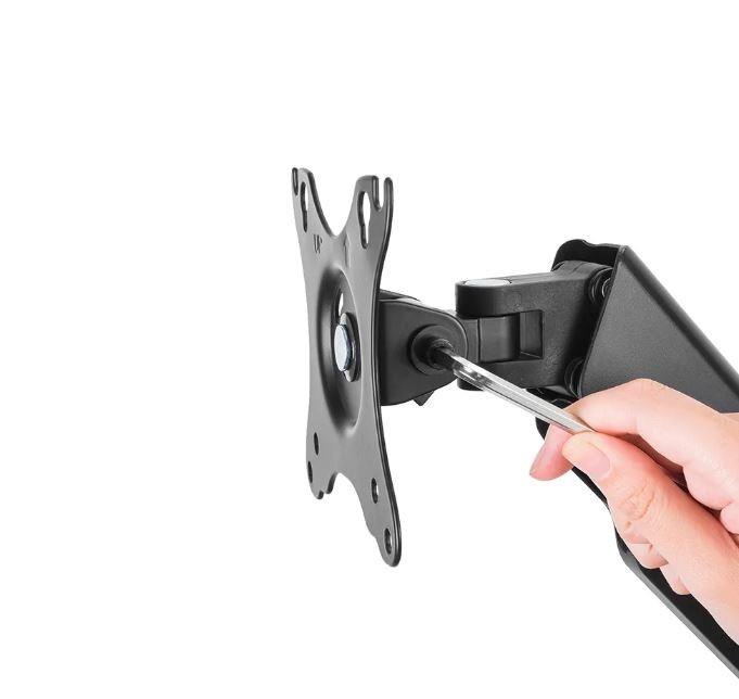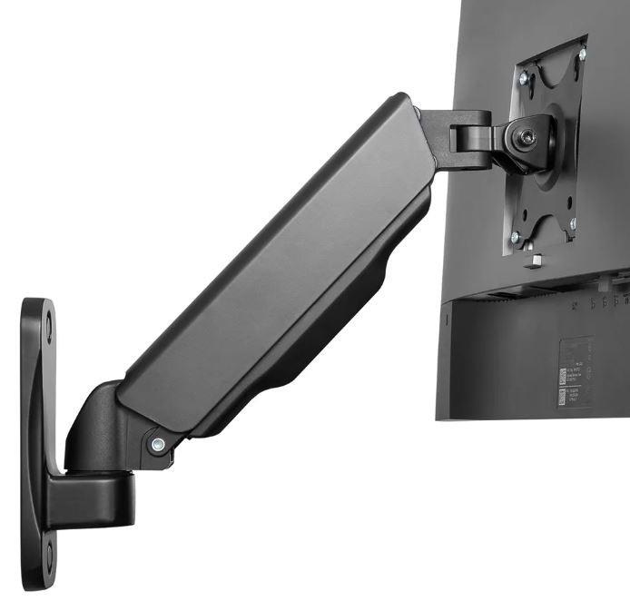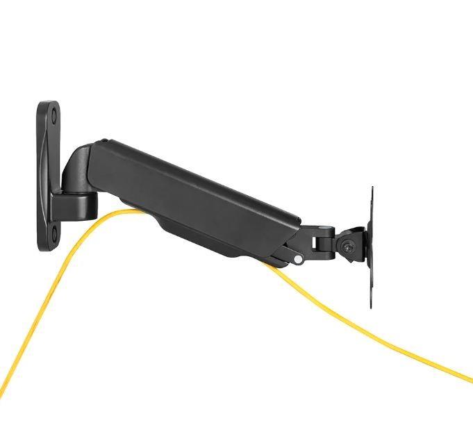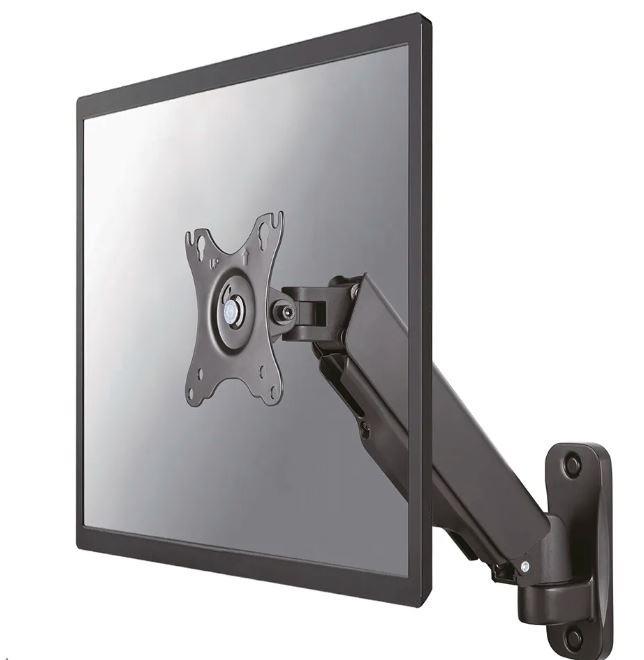 Neomounts firmy Newstar WL70-440BL11 to pełnowymiarowy uchwyt ścienny do płaskich ekranów o przekątnej do 32 cali i maksymalnym udźwigu 9 kg. Wszechstronna technologia przechylania (135°), obracania (360°) i obracania (180°) umożliwia aby stworzyć optymalny kąt widzenia. WL70-440BL11 ma głębokość 9-38 cm i nadaje się do ekranów spełniających układ otworów VESA od 75x75 do 100x100 mm. Możliwość łatwej regulacji wysokości mocowania za pomocą sprężyny gazowej. System zarządzania pozwala na poprowadzenie i zabezpieczenie luźnych kabli z tyłu ekranu. Dodatkowo w uchwycie zastosowano Easy-release VESA, która pozwala w mgnieniu oka przymocować telewizor.